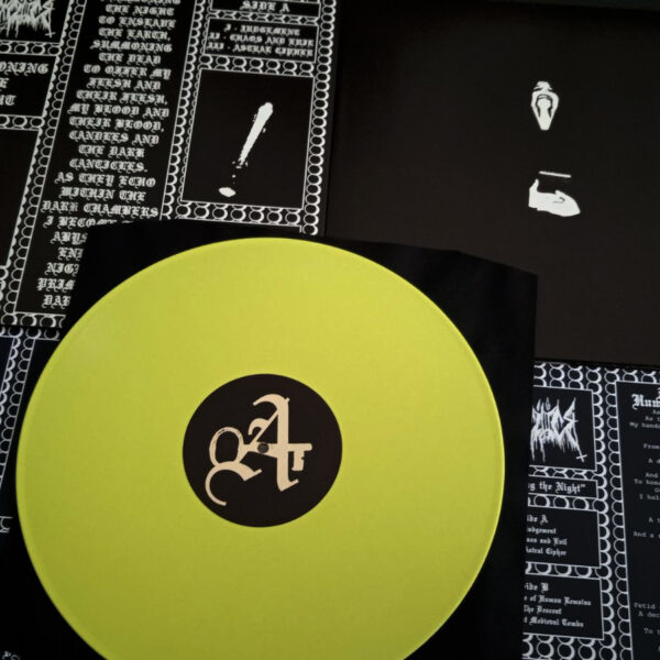 Raw psychotic Black Metal from the Perverse Homage circle. This LP compilation features the long time sold out demos “Demo I” (Lp version originally released by Skjold) and “s/t” (LP version originally released by Goatowarex). Comes with an insert and a double sided A2 poster. Black vinyl version.