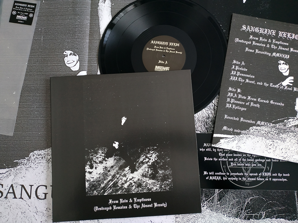 Altare is proud to present the vinyl version of “From Ruin & Emptiness (Destroyed Remains & The Absent Beauty)” the latest offering from Sanguine Relic. No descriptions needed.